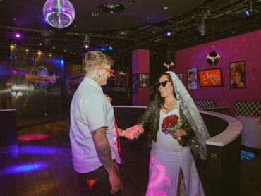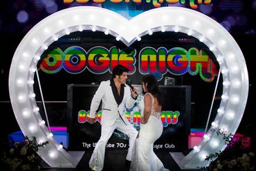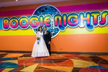 Atlantic City Chapel of Love is a unique wedding experience located at Boogie Nights, the Ultimate 70s, 80s, & 90s Dance Club at Tropicana, Atlantic City. Boogie Nights has everything needed for the ultimate party experience: Giant video wall, light up dance floor, 1 huge mirror ball, state of the art lighting and sound system, 50,000 watts of dance-club sound and video screens throughout the venue, effects including bubbles, snow and so much more.